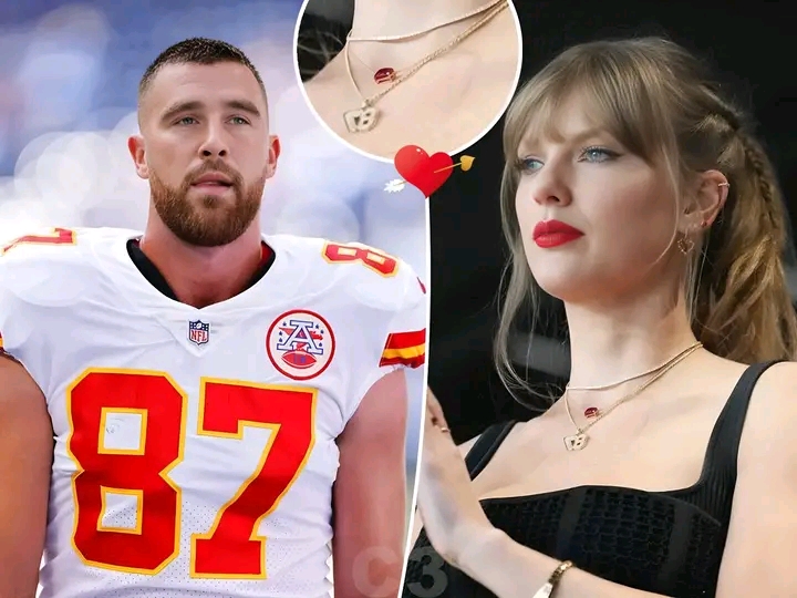 Travis Kelce gifts Taylor Swift an expensive necklace, symbolizing the key to his heart, as a token of appreciation after the victory against the Dolphins and to express gratitude for her unwavering support.