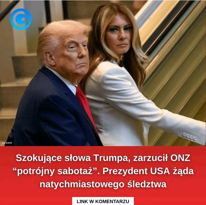 Wczoraj w Organizacji Narodów Zjednoczonych doszło do PRAWDZIWEJ HAŃBY – nie jednego, nie dwóch, ale trzech bardzo złowrogich wydarzeń! Najpierw schody ruchome prowadzące na główną salę zatrzymały się z piskiem. Zatrzymały się w mgnieniu oka. Niesamowite, że Melania i ja nie padliśmy twarzą na ostre krawędzie tych stalowych schodów – napisał prezydent USA.